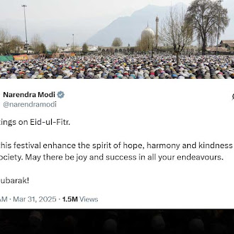 PM Narendra Modi, in his characteristic digital diplomacy, posted on X: "Greetings on Eid-ul-Fitr. May this festival enhance the spirit of hope, harmony and kindness in our society. May there be joy and success in all your endeavours. Eid Mubarak!"