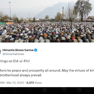 Assam CM Himanta Biswa Sarma kept it brief: "Greetings on Eid-ul-Fitr! Let there be peace and prosperity all around. May the virtues of kindness and brotherhood always prevail."
