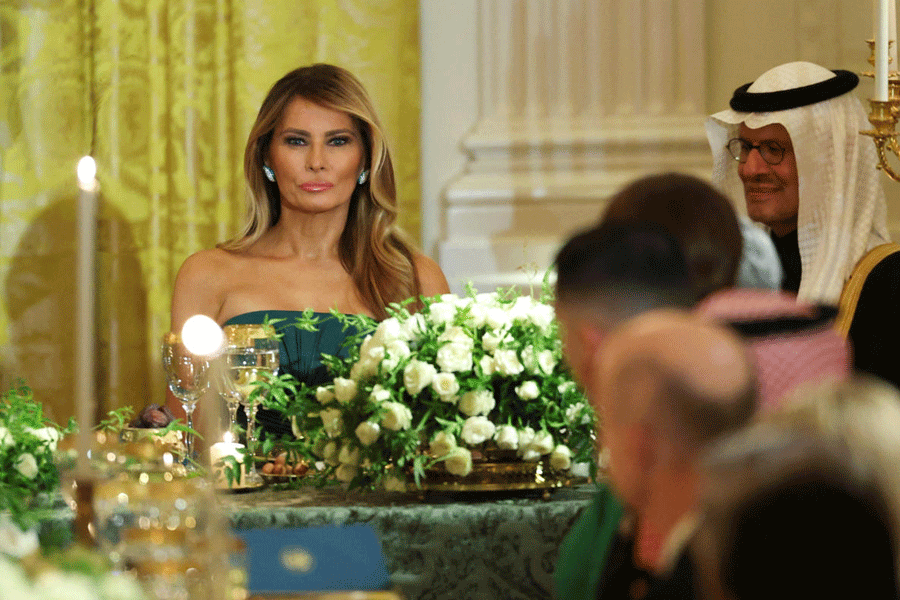 At the evening dinner, Trump and First Lady Melania Trump greeted the crown prince on the red carpet before leading him into the East Room, where guests from the global finance, tech and sports worlds had gathered.