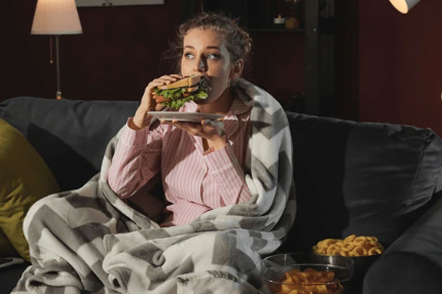 Eating later in the day – with a heavy dinner and late-night snacking – seems to lead to worse metabolic function. This means the body becomes less efficient at converting food into energy, managing blood sugar and regulating fat storage.