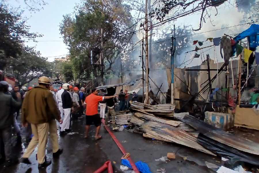 Three fire tenders reached the site by 5pm. Local vendors grabbed what they could and fled to the opposite footpath as the smell of burnt woollen and polyester jackets and sweaters filled the air.
