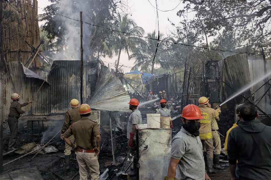 A fire broke out around 4.30pm on Thursday on SN Banerjee Road, at 15 RSM Square. The fire started out at a winter garments godown in the area popularly known as Bhutiya Market. Locals said no one was inside when the blaze broke out.