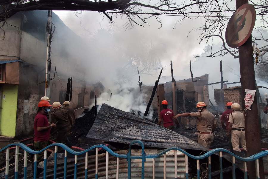 Ten fire tenders were pressed into service to douse the blaze that erupted around 4 pm in the congested area, he said.
