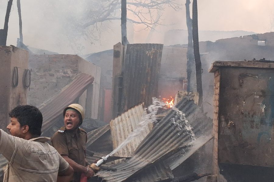 The shop was reportedly stocked with wooden planks, furniture and timber, besides inflammable materials.