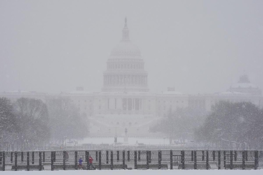 Security barriers surround the Capitol as snow falls ahead of a joint session of Congress to certify the votes from the Electoral College in the presidential election, in Washington, Monday, Jan. 6, 2025. (AP/PTI)