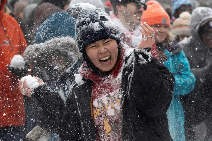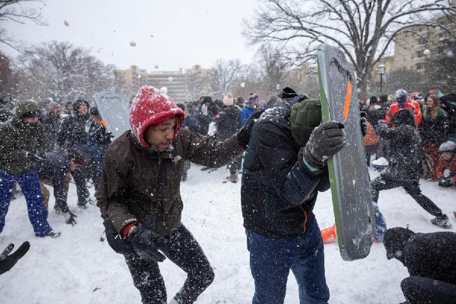 People participate in snowball fight on the lawn of the United States Capitol, as a winter storm that brought snow, ice and freezing temperatures to a broad swath of the U.S. arrived, in Washington, U.S. (Reuters)