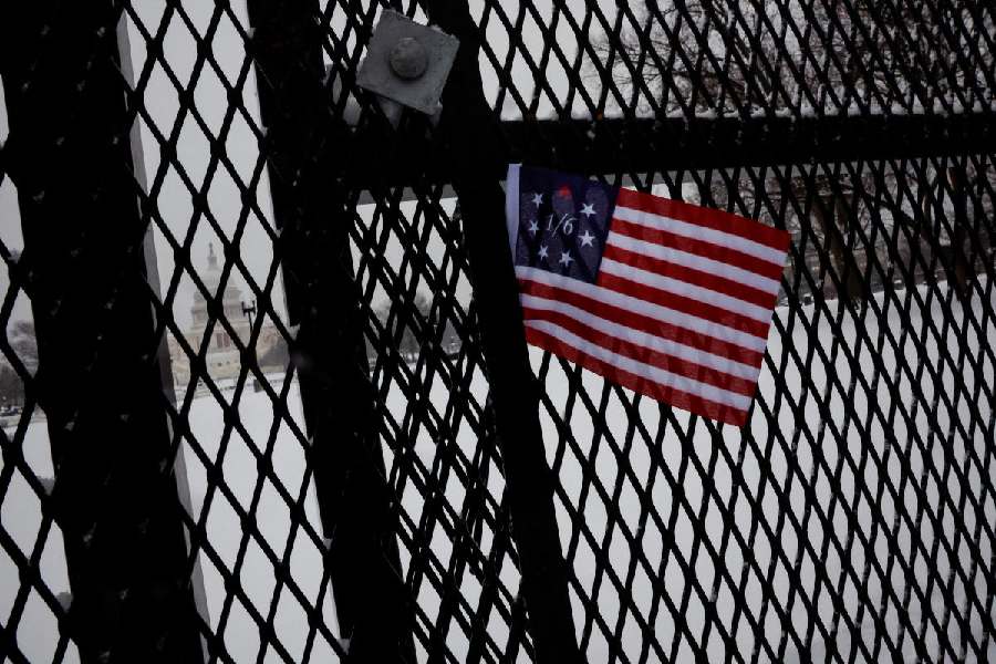 A flag with 1/6 hangs from security fence near the U.S. Capitol, on the day of a joint session of Congress to certify Donald Trump's election, as a winter storm that brought snow, ice and freezing temperatures to a broad swath of the U.S. arrived, in Washington, U.S. January 6, 2025. (Reuters)