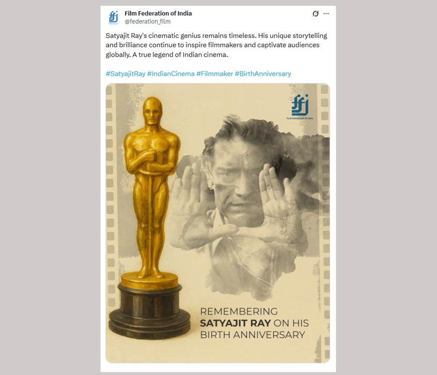 The Film Federation of India, in a post on X, wrote, “Satyajit Ray's cinematic genius remains timeless. His unique storytelling and brilliance continue to inspire filmmakers and captivate audiences globally. A true legend of Indian cinema.”