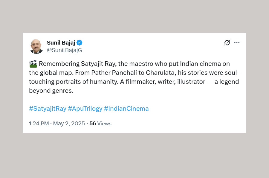 Sunil Bajaj, Group Director of the Aditya Birla Group & Board Member at Living Media, wrote: “Remembering Satyajit Ray, the maestro who put Indian cinema on the global map. From Pather Panchali to Charulata, his stories were soul-touching portraits of humanity. A filmmaker, writer, illustrator — a legend beyond genres.”