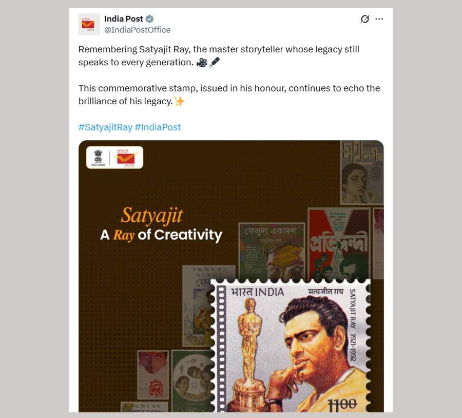The India Post Office joined in the commemorations, writing on X: “Remembering Satyajit Ray, the master storyteller whose legacy still speaks to every generation. This commemorative stamp, issued in his honour, continues to echo the brilliance of his legacy.”