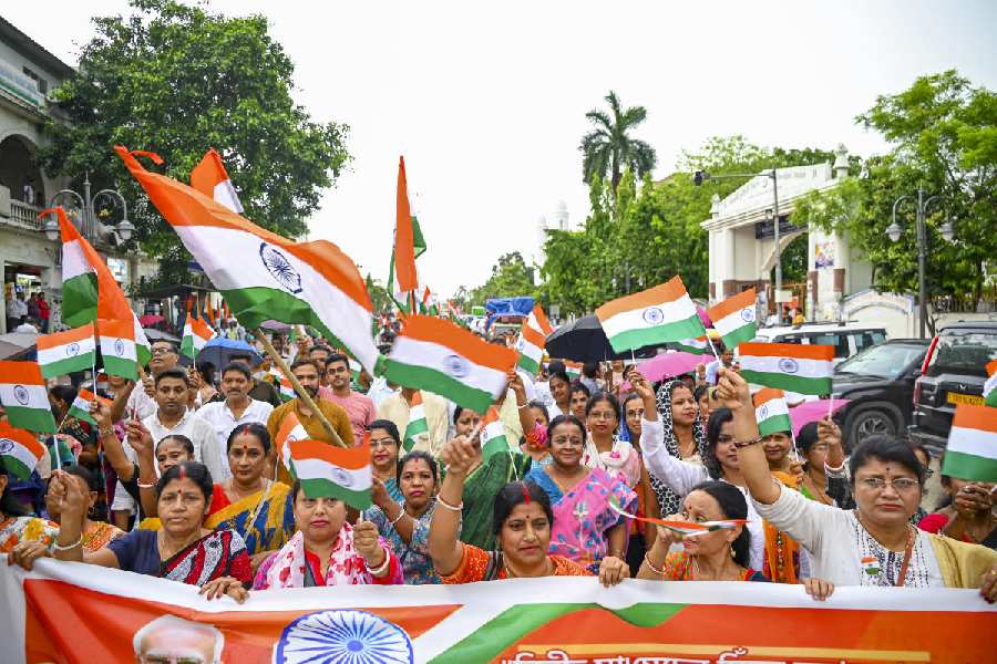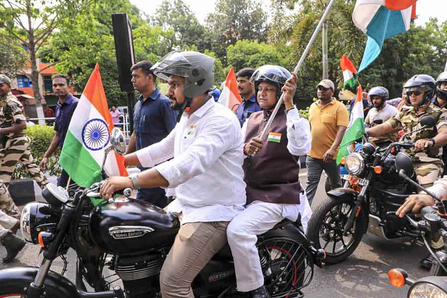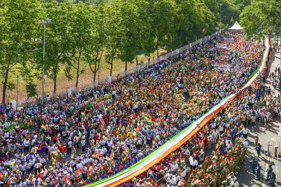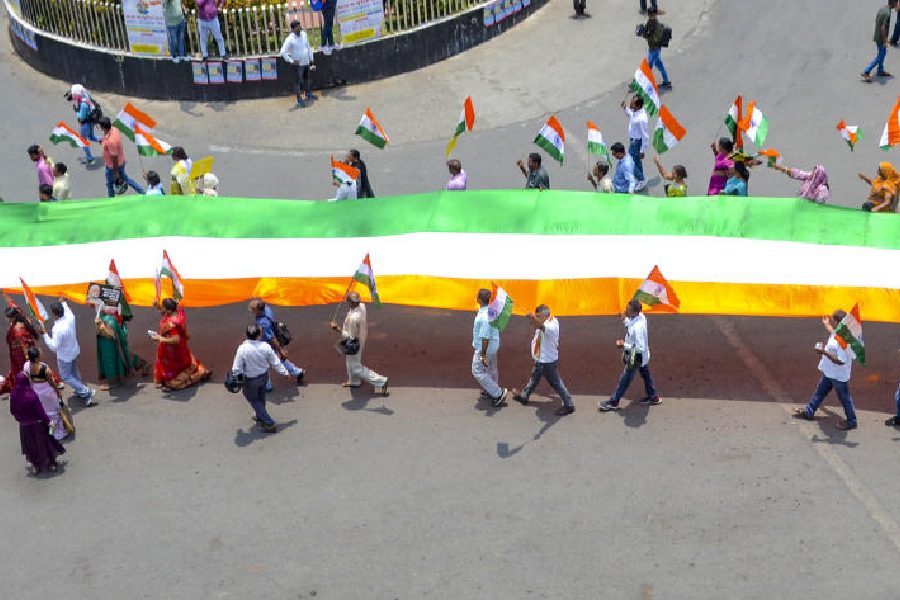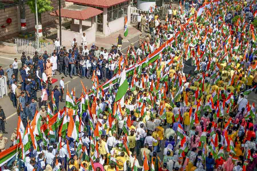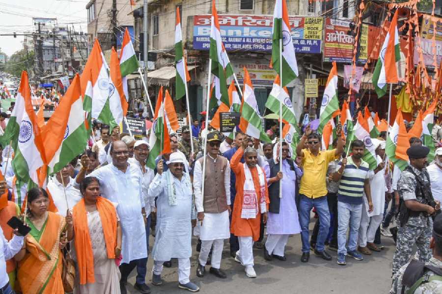 People take part in a 'Tiranga Yatra' to express solidarity with the Indian armed forces, in Ranchi, Wednesday, May 14, 2025. (PTI)