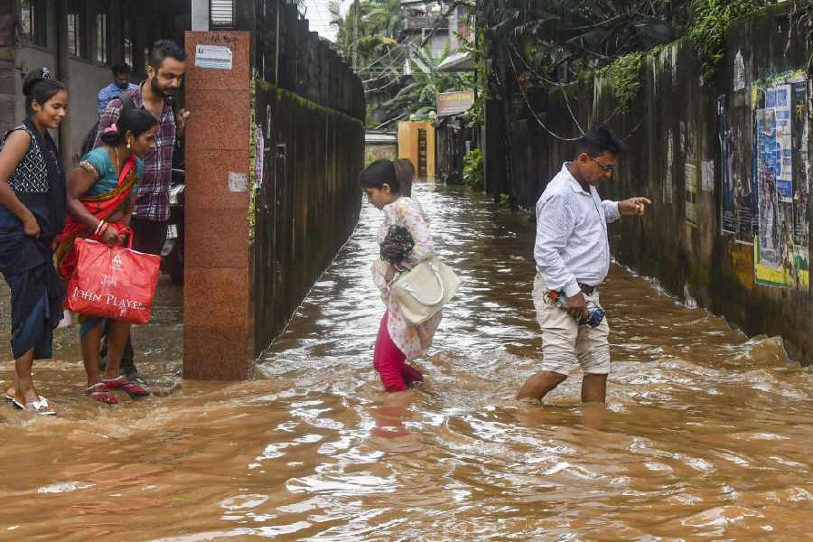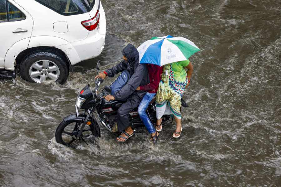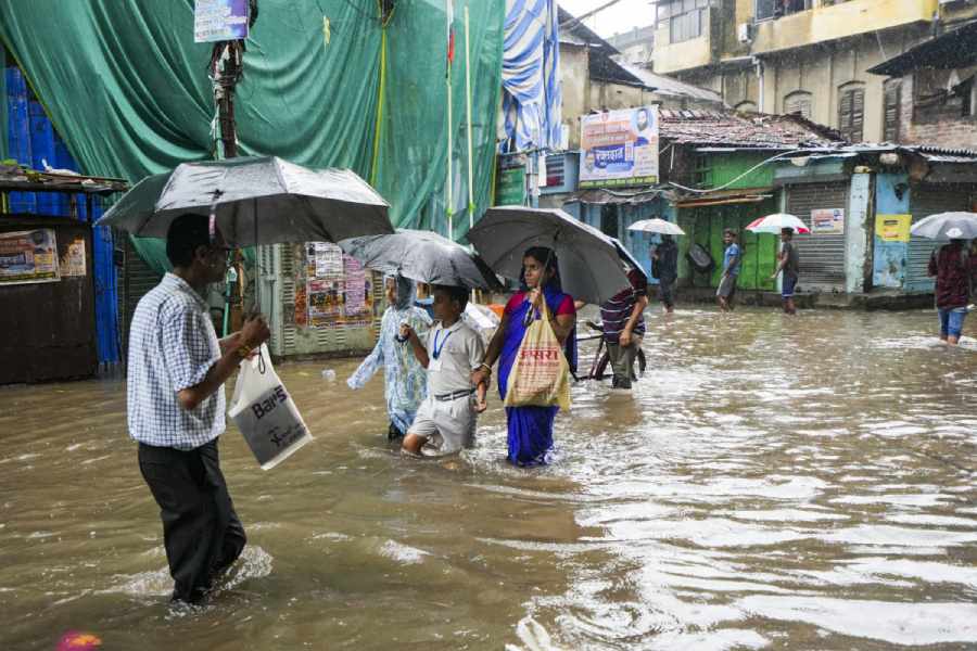 In Calcutta, residents wade through waterlogged streets after a torrential downpour. The heavy rains have paralysed normal life, with several parts of the city grappling with severe waterlogging.