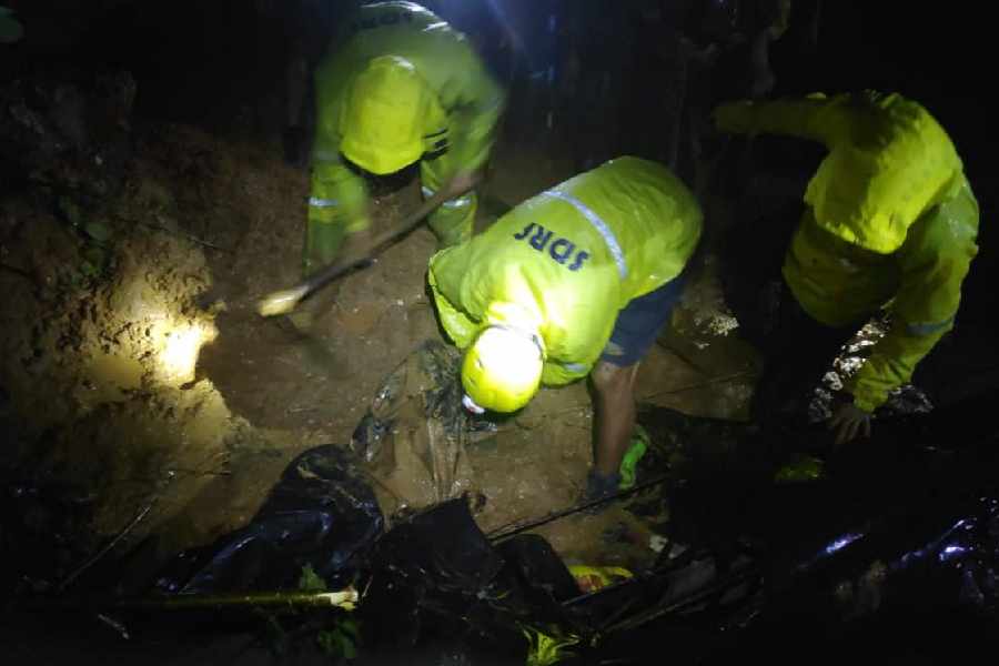 In Rudraprayag, SDRF personnel carry out a rescue operation after landslides triggered by heavy rains buried homes near Khat Gadera. The relentless rains have caused significant damage, displacing families and trapping many under debris.