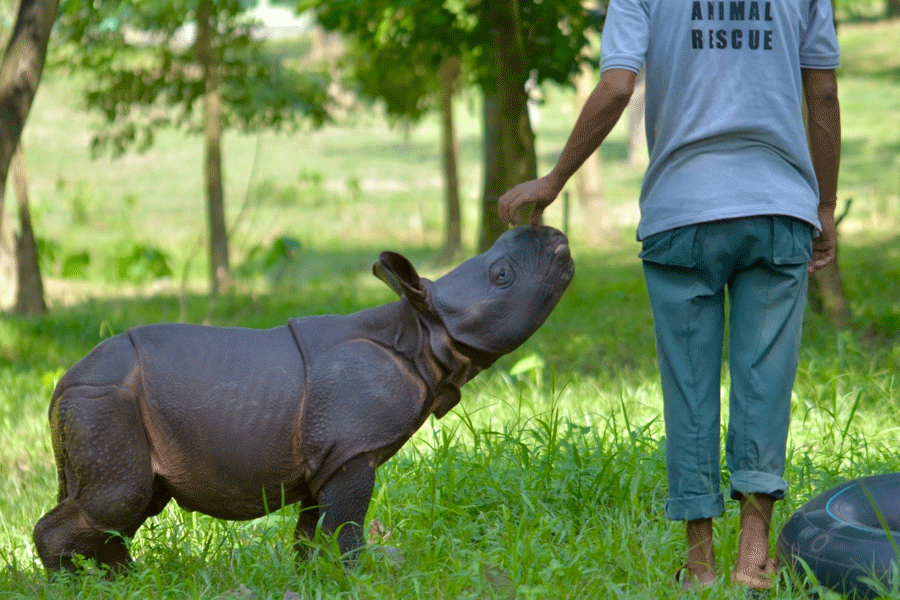 Two male greater one-horned rhinoceros calves rescued as helpless infants during Assam’s annual floods were on Tuesday moved from a rehabilitation centre to a pre-release enclosure inside Kaziranga National Park, marking a critical step in their long journey back to the wild.