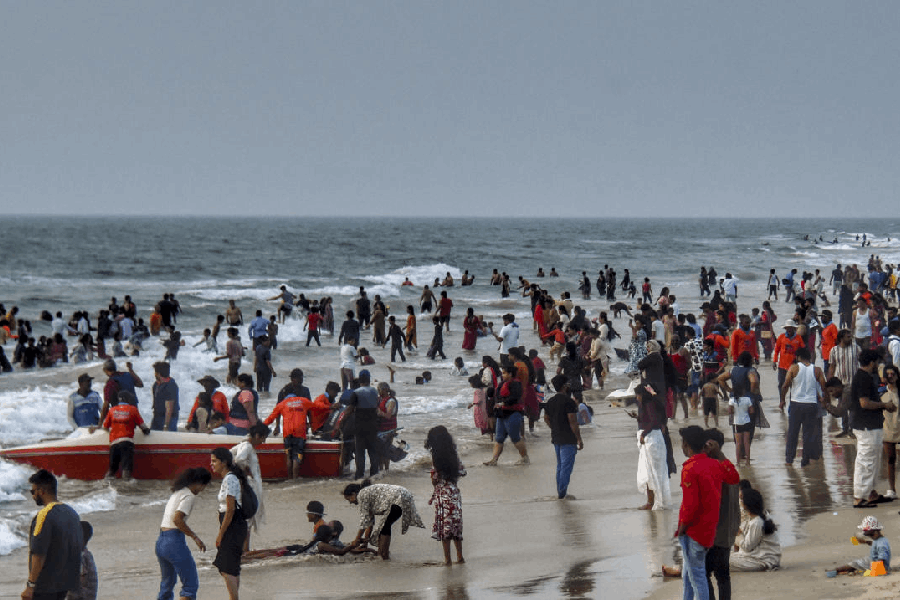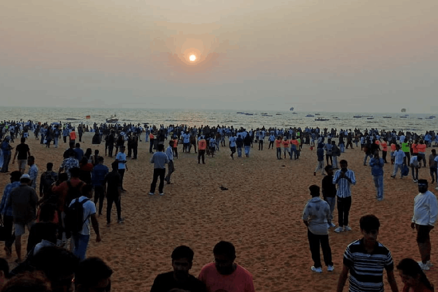 People visit a beach on New Year’s eve, in Panaji, Goa, Wednesday, Dec. 31, 2025. (PTI)