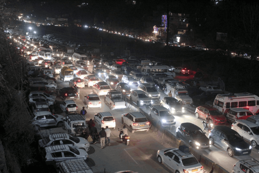 Vehicles move amid a traffic congestion on New Year’s eve, in Manali, Himachal Pradesh, Wednesday, Dec. 31, 2025. (PTI)