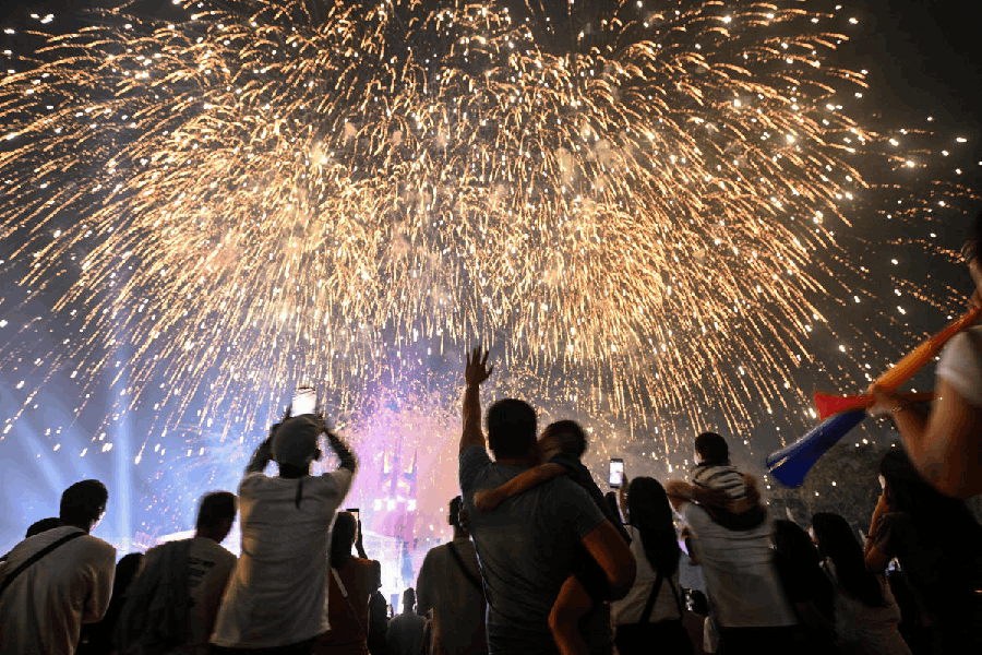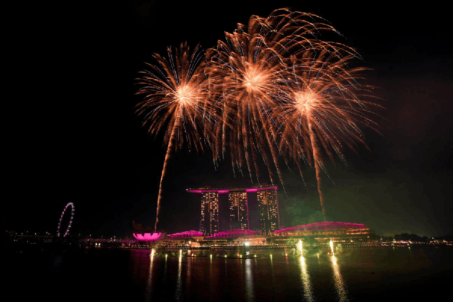 Fireworks explode over the Marina Bay during the New Year celebrations in Singapore, December 31, 2025. (Reuters
