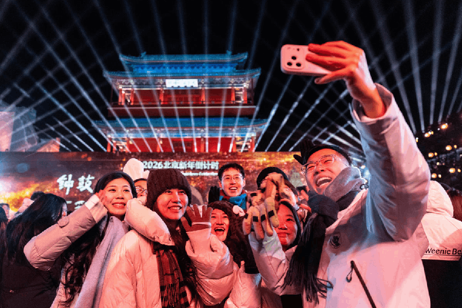 People gather at a New Year countdown ceremony at Juyongguan Great Wall section, also known as Juyong Pass, in Beijing, China, December 31, 2025. (Reuters)