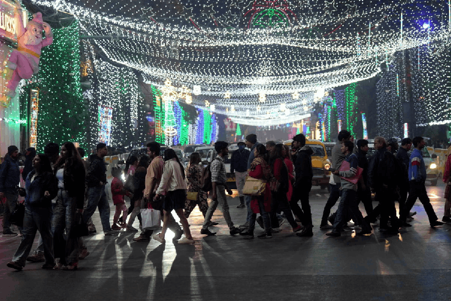 Visitors cross a road as they gather on New Year’s eve at Park Street, in Kolkata, Wednesday, Dec. 31, 2025. (PTI)