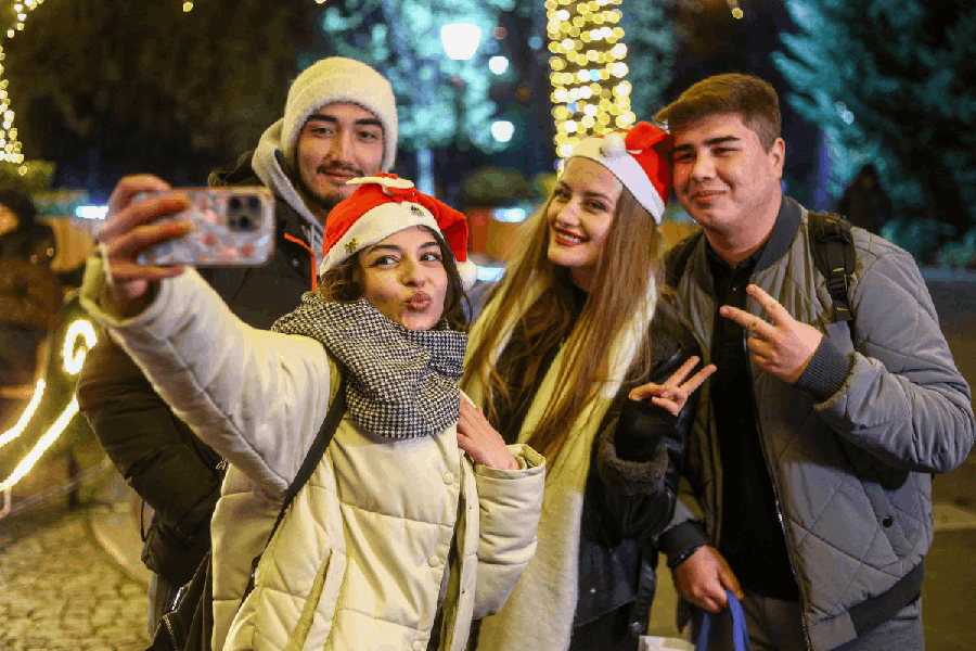 People pose for a photo on New Year's Eve in downtown Ankara, Turkey, December 31, 2025. (Reuters)