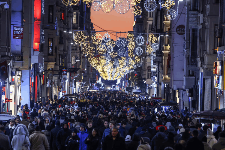 People walk along the main shopping and pedestrian street of Istiklal on New Year's Eve in central Istanbul, Turkey, December 31, 2025. (Reuters)
