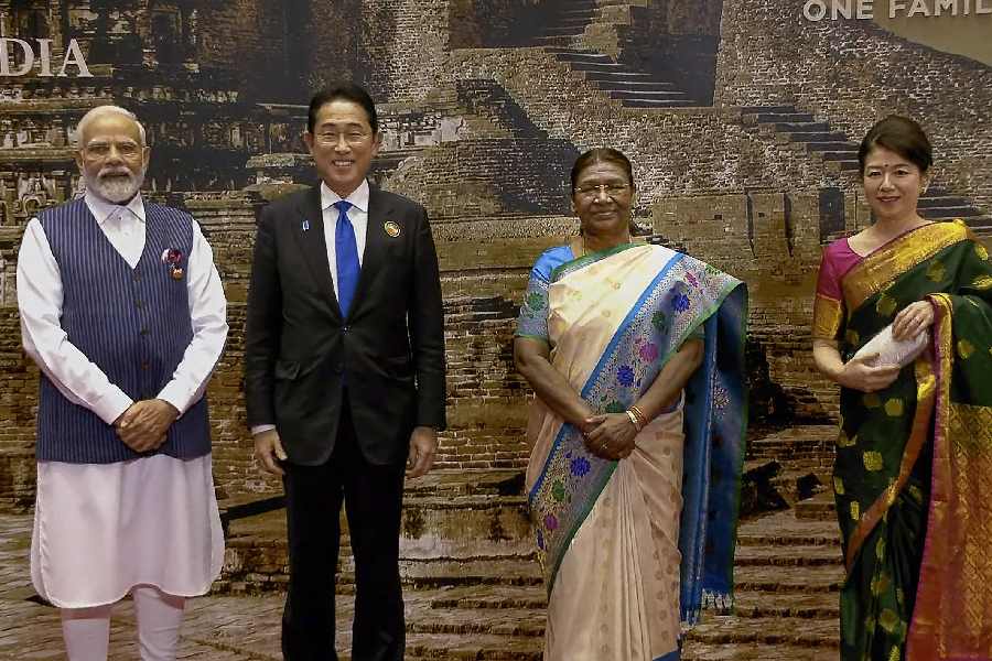 President Droupadi Murmu and Prime Minister Narendra Modi warmly receive Japanese Prime Minister Fumio Kishida at the Bharat Mandapam.