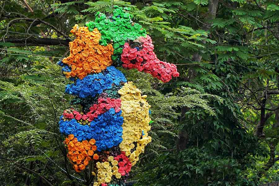 Lord Ganesha idol made from different vegetable seeds at a 'pandal' during Ganesha Chaturthi festival, in Bhubaneswar, Odisha.