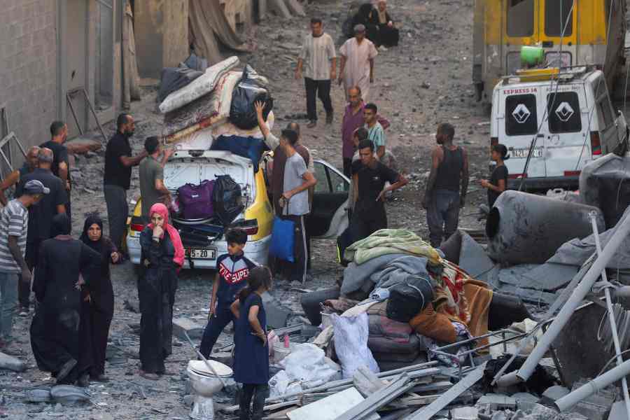 Israel renewed its calls on civilians to leave, and long columns of Palestinians streamed towards the south and west in donkey carts, rickshaws, heavily laden vehicles or on foot.