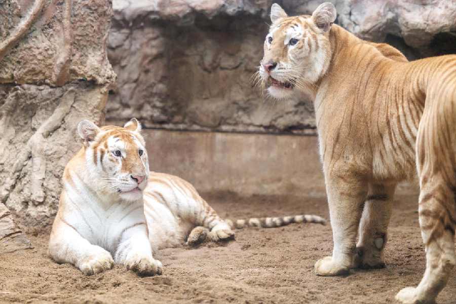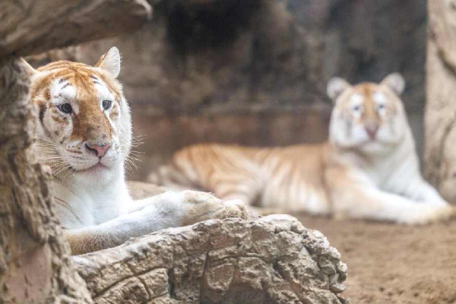 Unusually coloured Bengal tigers like siblings Ava and Luna, both 3 years old, are found only in animal breeding centres or zoos rather than in the wild, said Patcharee Pipatwongchai, the tiger trainer at Chiang Mai's Night Safari.