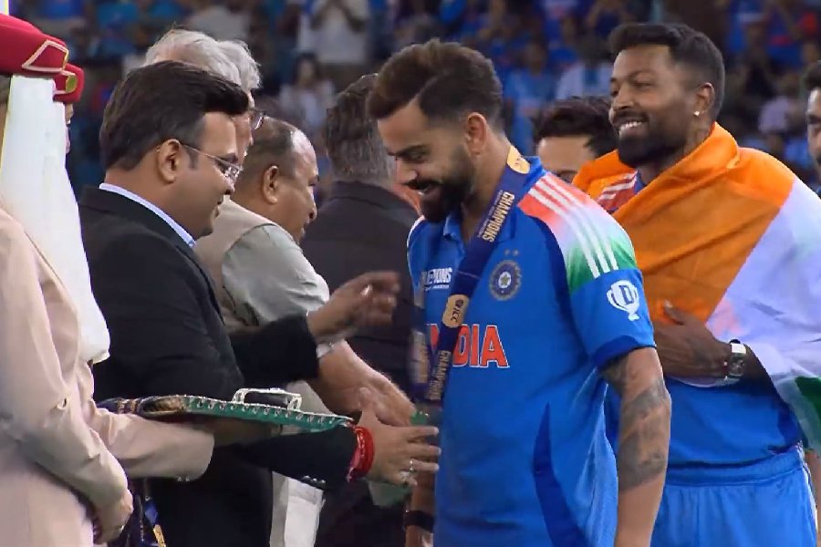 But the ultimate gigil moment came when Kohli held the T20 World Cup trophy with Rohit standing beside him with his daughter perched on his shoulders, as they all broke into contagious laughter.