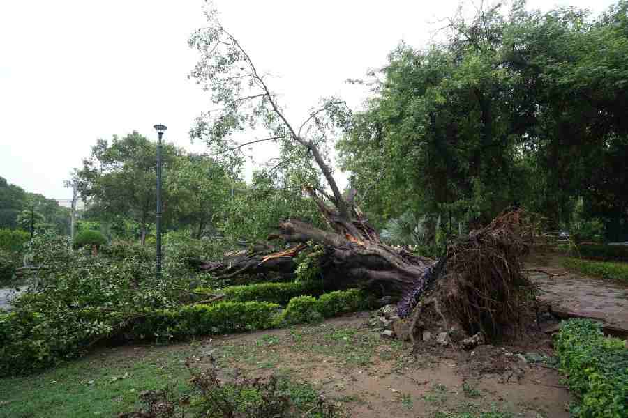 Several road stretches of the city, including Moti Bagh, Minto Road, Delhi Cantonment and Deen Dayal Upadhyay Marg were partially submerged, while trees and electricity poles were uprooted in several areas.