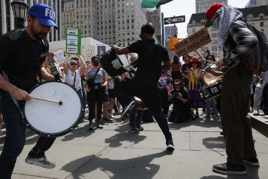 Other protesters waved Palestinian flags while wearing keffiyeh scarves, chanting "free Palestine" and expressing solidarity with Palestinians killed in Israel's war in Gaza.