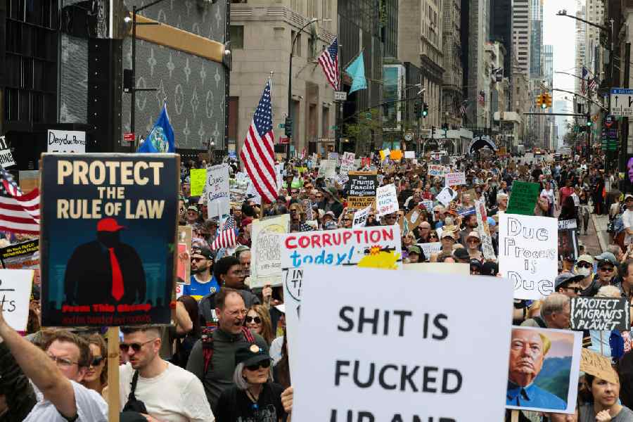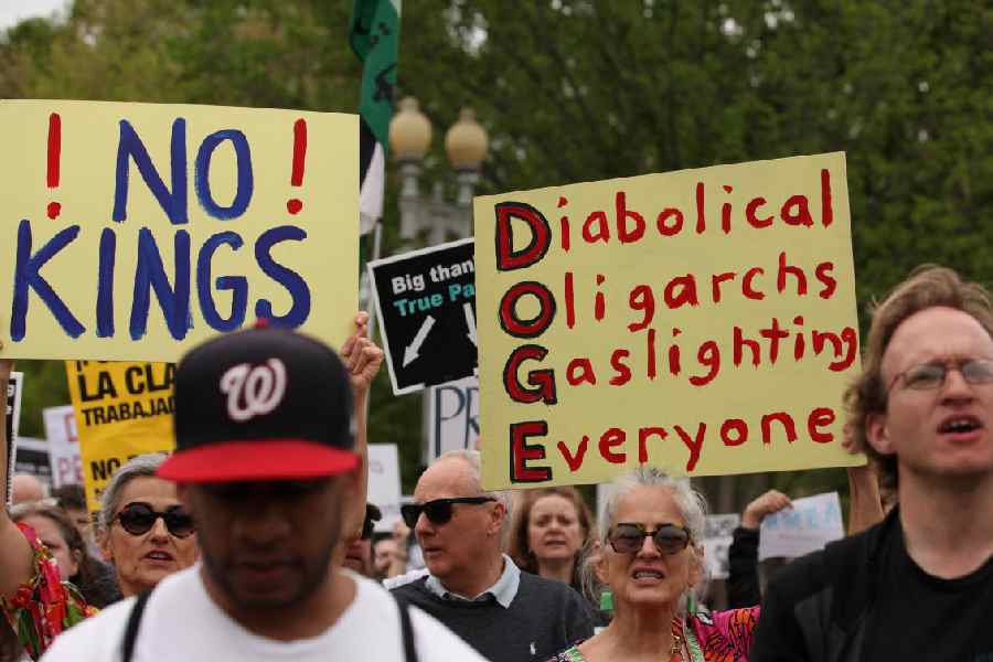 Outside the White House, protesters carried banners that read "Workers should have the power," "No kingship," "Stop arming Israel" and "Due process," media footage showed.