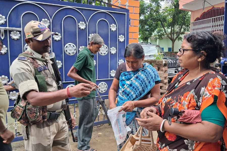 Voters were not allowed to carry mobile phones inside polling stations and were instructed to deposit them at designated spots under the supervision of Commission-appointed volunteers.