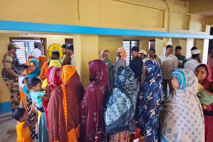 In the same area, long queues of voters were seen after a brief respite from rain.