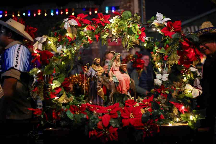 People march with a statue of Joseph and Mary on Olvera Street during the annual Las Posadas Christmas procession in Los Angeles, California, U.S., December 23, 2024. Reuters