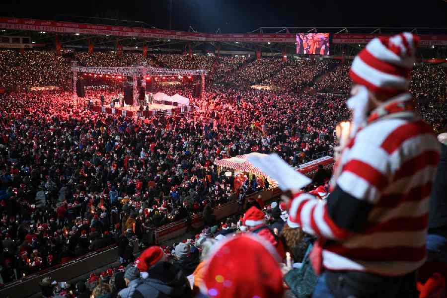 Fans of the German soccer club 1. FC Union Berlin gather at the 'Stadion An der Alten Foersterei' stadium to sing traditional Christmas carols in Berlin, Germany December 23, 2024. Reuters