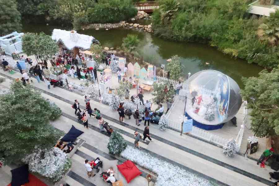 People walk around Christmas decorations at Al Barari's Winter Fest, United Arab Emirates, December 22, 2024. Reuters