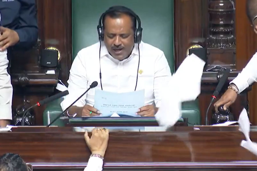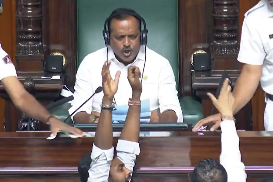 Speaker Speaker U.T. Khader, when asked about action against BJP MLAs for disrupting the proceedings, said, “It is too early to talk about any action. We will look into this. Our main intention was that the Finance Bill should be passed. I have done my duty, and they have done theirs.”