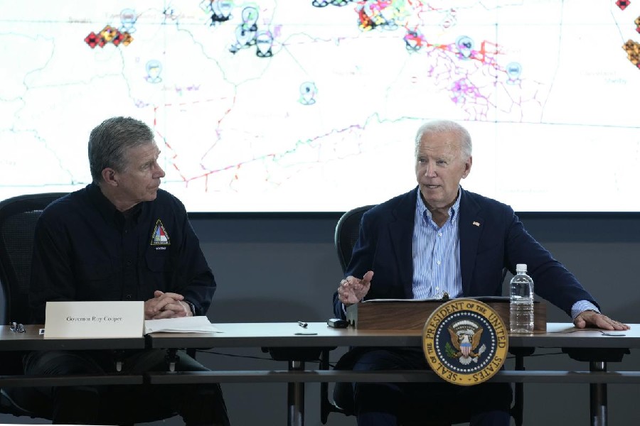 “Nobody can deny the impact of the climate crisis any more,'' Biden said at a briefing in Raleigh, the state capital. "They must be brain dead if they do.”