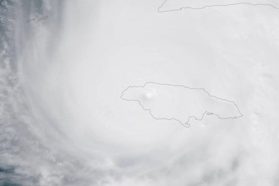 A satellite view shows Hurricane Melissa crossing Jamaica after making landfall.