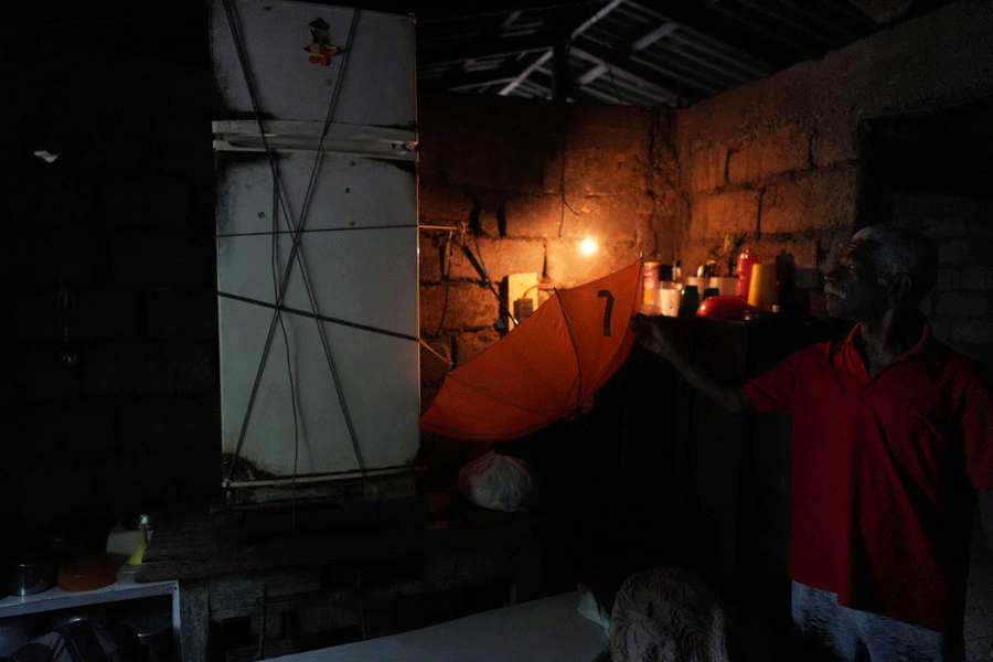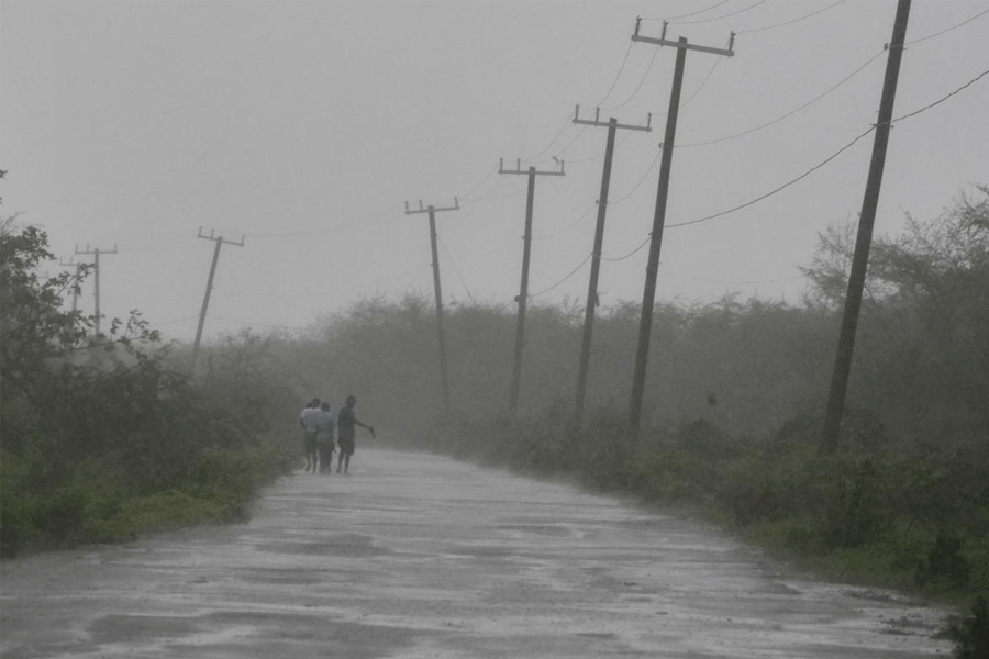 People walk along a road during the passing of Hurricane Melissa in Rocky Point, Jamaica. (AP/PTI)