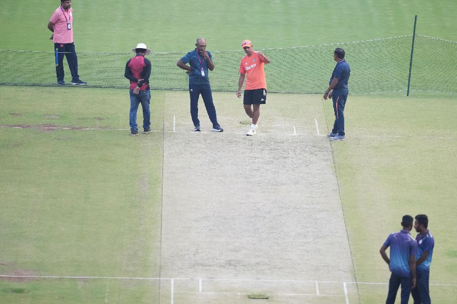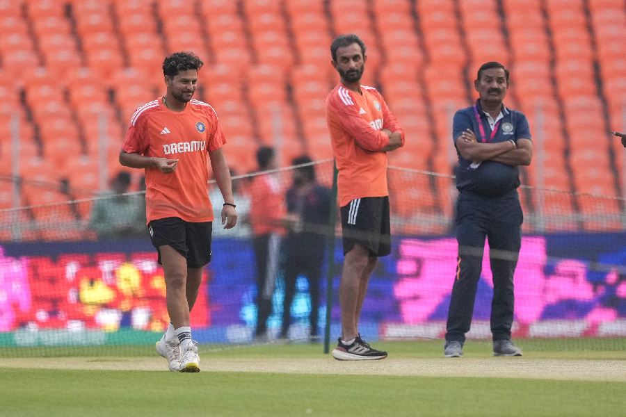India's Kuldeep Yadav and batting coach Vikram Rathour inspect the pitch. It is a testament to Kuldeep's sublime skills that barring Daryl Mitchell, no batter has went for the offence against the left-arm wrist spinner.
