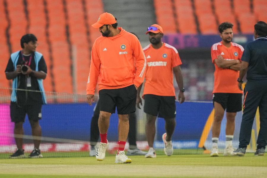 India's captain Rohit Sharma during a practice session ahead of the ICC Men’s Cricket World Cup 2023’s final match between India and Australia, at the Narendra Modi Stadium, in Ahmedabad.
