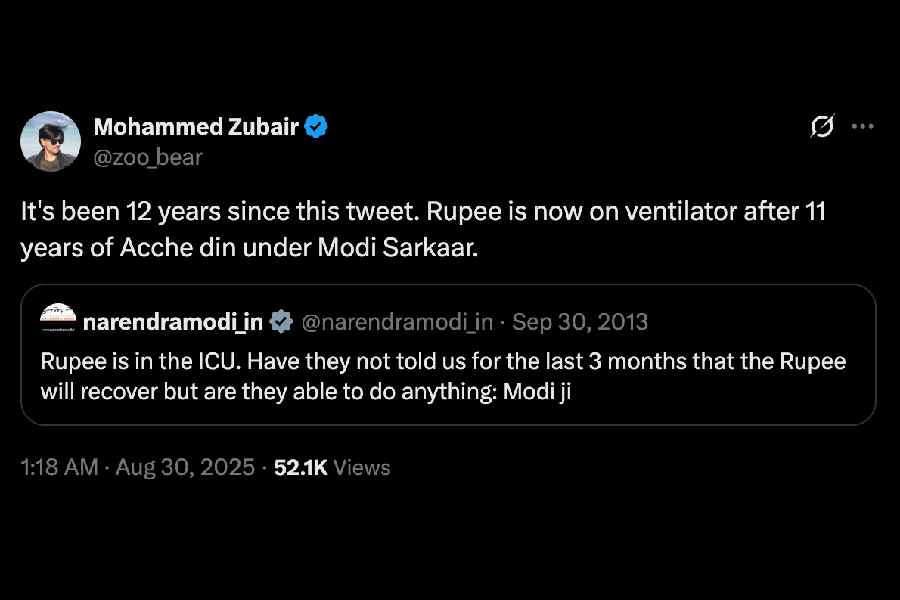 Others exhumed Narendra Modi’s decade-old barbs against the UPA. A tweet from 2013 in which Modi declared the rupee “in the ICU” resurfaced, with one user adding: “It’s been 12 years since this tweet. Rupee is now on ventilator after 11 years of Acche Din under Modi Sarkaar.”
