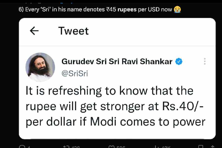Spiritual leader Sri Sri Ravi Shankar, who once claimed the rupee would strengthen to 40 per dollar if Modi came to power, also did not escape. “Every ‘Sri’ in his name denotes Rs 45 per USD now,” a user quipped.