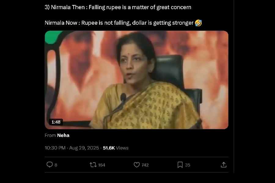The Indian rupee plummeted to a historic low on Friday, breaching the 88-per-dollar mark for the first time as concerns over punitive US tariffs rattled investors. While markets reacted with anxiety, the internet responded familiarly: by dusting off old tweets and viral videos of politicians, celebrities and spiritual gurus who once lampooned the falling currency and who now seem to have gone silent.
