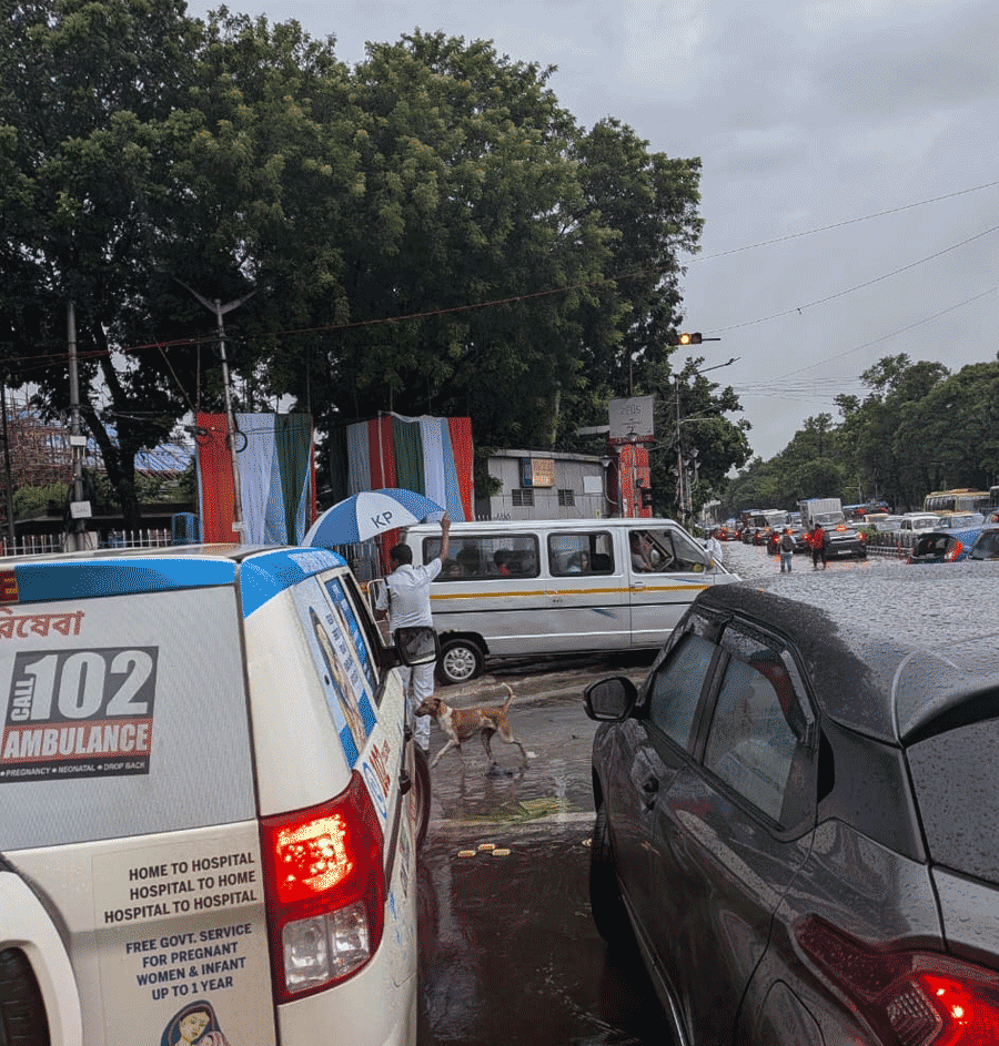 Kolkata experienced sudden afternoon showers accompanied by thunderstorms on Thursday, leading to waterlogging in several areas and causing traffic congestion and delays for commuters across the city.
