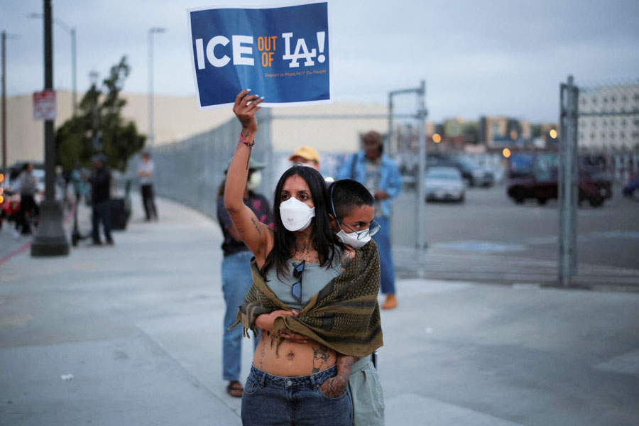 Television news footage earlier in the day showed caravans of unmarked military-style vehicles and vans loaded with uniformed federal agents streaming through Los Angeles streets as part of the immigration enforcement operation.