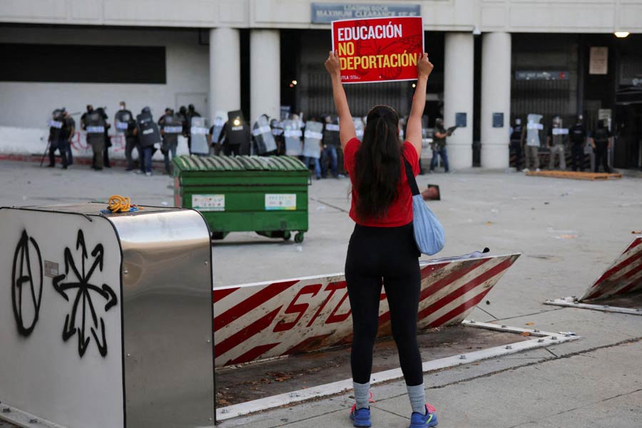 The LAPD did not take part in the immigration enforcement action. It was deployed to quell civil unrest after crowds protesting the deportation raids spray-painted anti-ICE slogans on the walls of a federal court building and massed outside a nearby jail where some of the detainees were believed to be held.